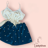 س خواب ساتن زنانه ست تاپ و شلوارک کد 5410، با طراحی زیبا و تنخور جذاب و راحت و خنکی که دارد مناسب استفاده در بهار و تابستان است. بند های سر شانه این تاپ قابل تنظیم است و پشت تاپ، کش دوخته شده که باعث میشود تنخور این لباس زیباتر شود.